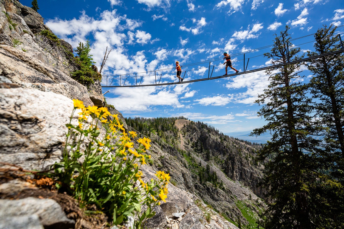 The Via Ferrata at Jackson Hole Mountain Resort (JHMR) has just been expanded into even more of a world-class climbing arena. With four new routes and features, including the Burma and Tyrolean Bridges and a new ladder on Iron Way, the excitement has just been upped significantly. Connie Kemmerer’s, the owner of JHMR, vision to bring the Via Ferrata to Jackson Hole is alive and growing.