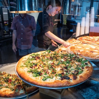 Enjoy the lively atmosphere with outdoor seating on a cozy patio, music, drinks at the four-sided bar, and a menu that caters to every craving.